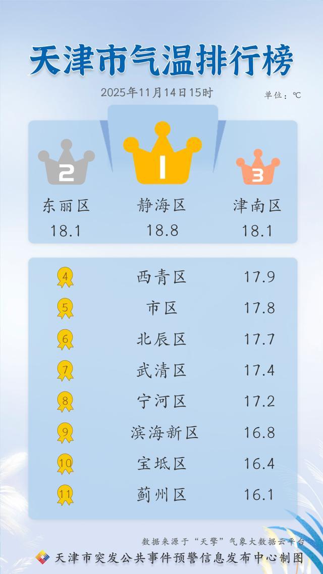 我们的城市今天阳光明媚,天气温暖。 15:00,全市大部分地区气温在17℃左右。淡淡的雾气出来。预计今晚和明晚,我们城市的空气扩散状况将会恶化。会出现细雾。局地有能见度不足1公里的大雾、小到中度雾。开车时请注意交通安全。小心保护您的健康。预计今晚和明天的最低气温在6至7摄氏度之间。明天白天最高气温为16℃。预计会有强烈寒潮。寒潮预计将于11月15日至17日午夜影响该市。其影响将是广泛的:气温将大幅下降,陆地和海上风力将增强。平均气温下降8~10℃,陆地阵风7~8级,渤海海面阵风9级。15日午夜至16日,西北风5~6级,阵风7~8级。17日(周一),仍有西北风4~5级,阵风5~8级,阵风6~8级。 七、渤海西部中部沿海地区,西北风7至8级,阵风9级。 17日,西北风6至7级、阵风8级持续吹。最高气温11摄氏度,最低气温约8摄氏度。其中,15日白天最高气温为16℃,17日(周一)降至5℃; 17日、18日上午,市中心最低气温为-2摄氏度,北部地区最低气温为-6摄氏度。 18日白天气温开始逐渐回升。目前,天津市气象台和天津市气象局南京市健康气象交叉创新中心联合发布中风危险气象黄色预警。市气象局、市农业农村委员会已发布设施内农业风灾轻度风险预警。 1.做好严寒天气的准备。感觉寒冷的市民外出时应注意保暖,预防心脑血管、呼吸道疾病。室外及时切蔬菜,防止结冰。 2. 注意大风的危险。远离外部标志、临时搭建物、高大树木等,加强设施温室、室外阳台的防风措施。 3、注意防火。多风气候干燥,火灾风险很高。请注意电气和消防安全。 4. 防止能见度差的影响。雾会降低能见度并增加交通堵塞和事故的可能性。磷出行时请注意交通安全。预计下周天气预报今晚晴转多云,下半年有小雾和风,最低气温7℃。 11月15日(星期六) 白天:晴至多云 夜间:阴天至晴天 白天:微风 夜间:微风至西北风 阵风5至6级 7级 16至6℃ 敏感气温16至4℃ 11月16日(星期日) 阴天,西北风,5-6级,阵风7-8级,阵风4-5级,阵风6-7级8--2℃,体温5--4℃,11月17日星期一,晴间多云,西北风,4-5级,阵风6-7级,11月18日星期二,多云,西北风4-5级,转微风,8--2℃,感觉6--4℃,11月19日星期三,晴间多云,微风,感觉10--1℃,气温10--1℃ 10~-2℃,11月20日(星期四):阴天,晴,小风,转北风,3~4级,9~0℃,感觉8~-1℃,11月21日(星期五)阴,北风3~4级,转小风,11~1℃,感觉温度9到-2℃,外出时别忘了。照顾好自己,穿保暖、防风的衣服、帽子、围巾和手套,尽量减少皮肤暴露在冷风中。天津天气 中国气象局 中国气象网