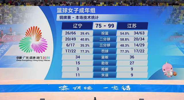 11月15日,全国锦标赛成年女篮进行了最后一场比赛。铜牌争夺战中,江苏女篮以99-75击败辽宁队,排名第三。在获得第一名的成年男篮比赛中,辽宁队在铜牌争夺战中不敌四川队,获得第四名。虽然不兴奋,但辽宁女篮也排名第四。至此,本届赛事成年女篮的第一枚奖牌诞生了。辽宁省队在上一场半决赛中击败了广东省女篮。江苏女篮以压倒性优势击败四川女篮。从实力上来说,辽宁队根本不是江苏队的对手。输的越少,赢的越多。除非你赢了20分以上,否则你将被视为获胜者。毕竟江苏队有很多代表性的打法呃。不过从比赛的进展来看,江苏队打得非常出色。江苏队以2-2、4-4、6-6的比分开始占据优势,一波20-10将领先优势扩大到两位数。首节结束,辽宁队18-28落后10分。即使到了第二节,江苏队火力依然完好,继续扩大领先优势。辽宁队确实没有机会。在进攻端,他找不到手感。比分没有第一节那么高。第一节他们只得到14分。半场结束,辽宁队32-50落后18分。辽宁队在第三节彻底崩溃,以20-8输给江苏队。分差依然保持在30分以上。不过,辽宁队其实很有韧性,一旦拿到20分就继续疯狂追分。第三节结束,辽宁队反击55-77落后22分。还远远落后的辽宁队能做什么呢?他们实在是无能为力。江苏队会继续关注我,敢于拼搏,不会给辽宁队翻盘的机会。最终,辽宁省队以75-99不敌江苏省队,获得第四名,江苏省女篮获得铜牌。辽宁队付金秋拿下22分9篮板4助攻,李萌萌拿下11分3篮板。凭借篮板和3次助攻,孙超越得到13分和2个篮板。江苏队方面,罗星辰得到28分8篮板3助攻,徐成阳26分9篮板,张曼曼13分2篮板7助攻。不得不说,江苏女篮确实很强。如果不是四川队和广东队,江苏队绝对是一支联盟中最好的球队之一。然而,盛宇和何盛亮这两位江苏女篮的球员确实生不逢时。他面对的对手实力太强,无力回天,只能获得第三名。当时,本届赛事成年女篮的第一枚奖牌揭晓。恭喜江苏队。登上领奖台真是太棒了。至于辽宁队,确实很弱。崔万俊已经尽力了。他带领老牌辽宁女篮进入前四,就证明了他高水平的领导能力。接下来他将重返联盟。新赛季崔万君能否带领辽宁女篮杀出黑马,让我们拭目以待。